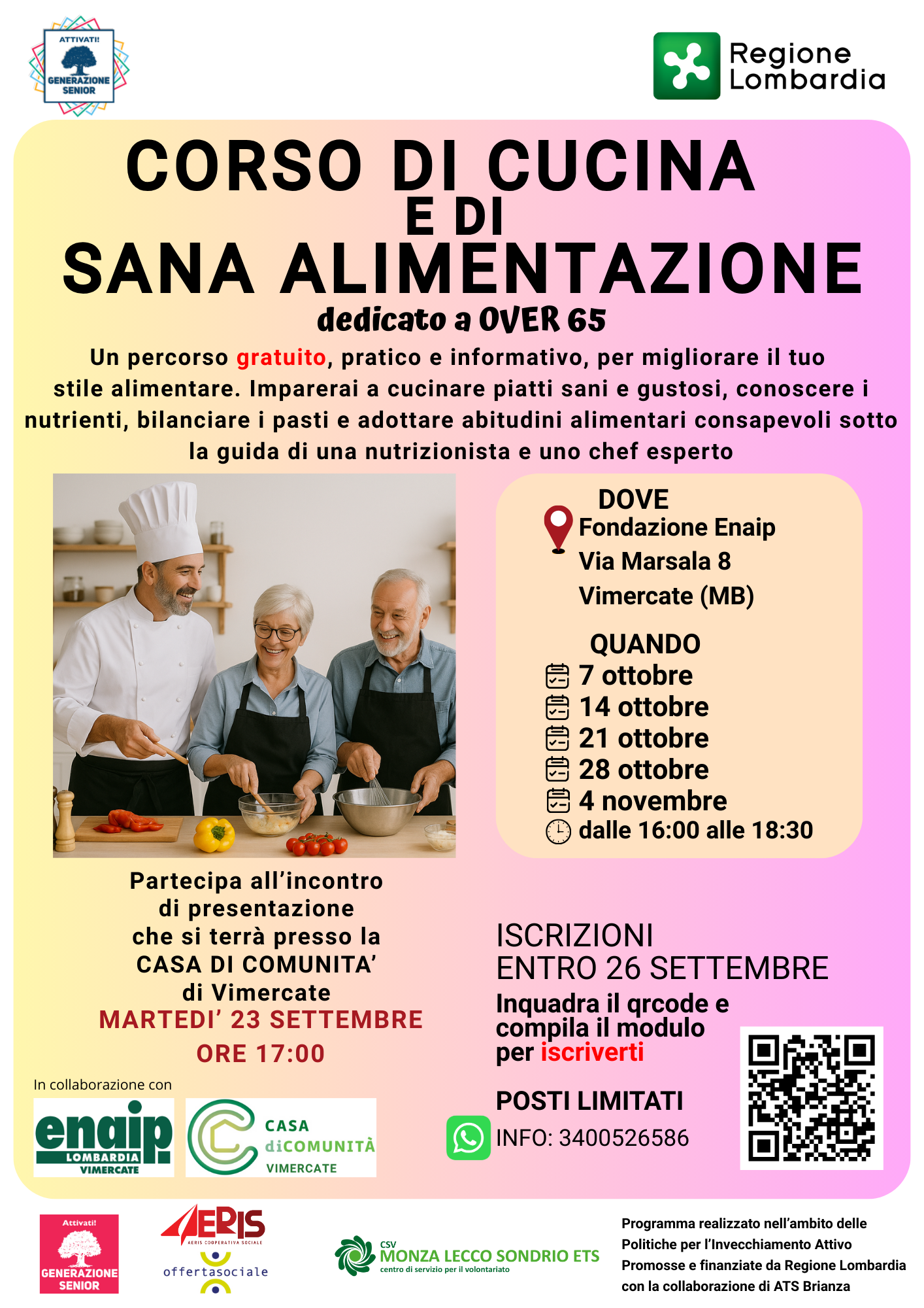 Corso di cucina e Sana alimentazione dedicato agli over 65